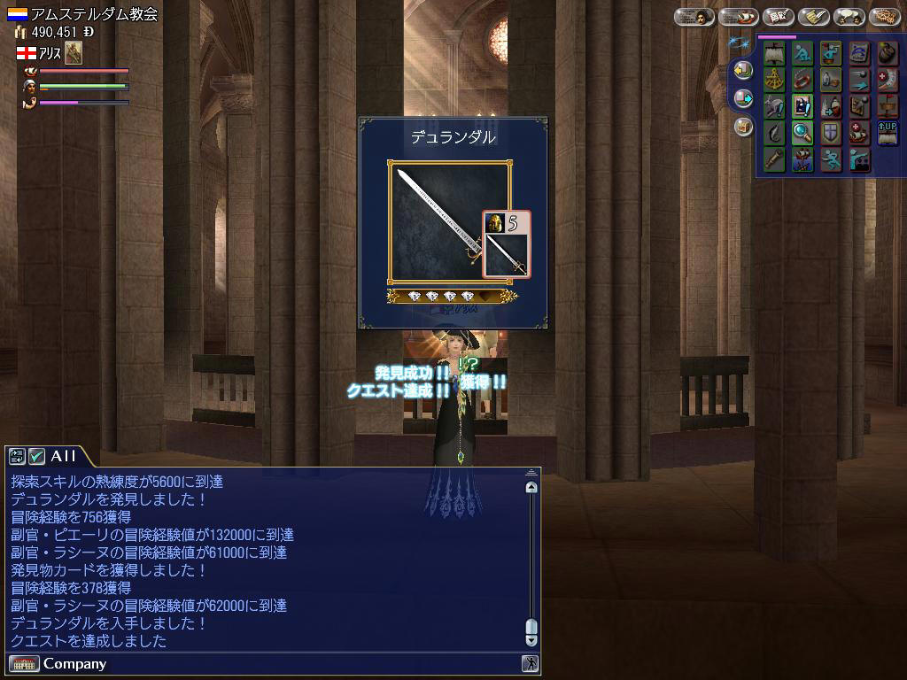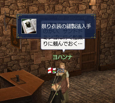 「ヒホンの少女」にまつわる一連のエピソードで、名剣デュランダル発見に端を発するこのクエスト郡は最終的にレシピ『祭り衣装の縫製法』をゲットできます。