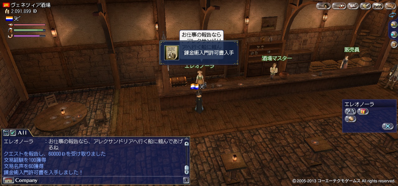 クエストをこなすのに水銀などが必要になるので、そういう物はどこかで買っていくといいですね。