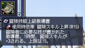 そしてここで虎の子の冒険技能上級教導書を(1時間冒険スキルが+3される)