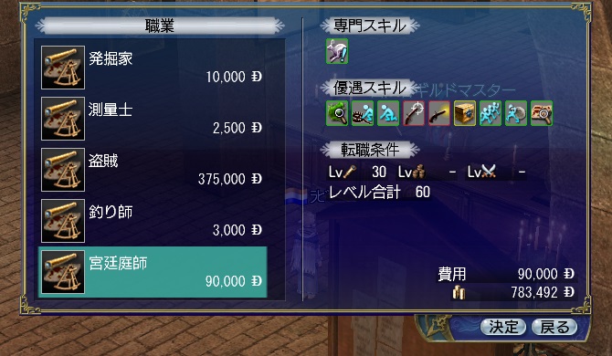 宮廷庭師、ギルドで見てみるとスキルこんな感じです。