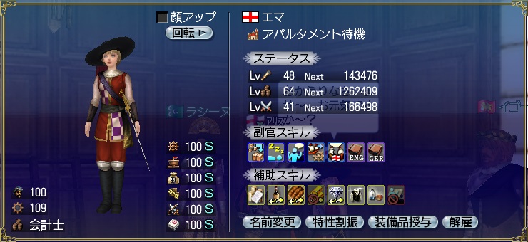 でもそうするとアリスは縫製+の副官がいなくなっちゃうから、エマさんの持ってるスキルで一つ残すなら縫製かな~って思ってます。
