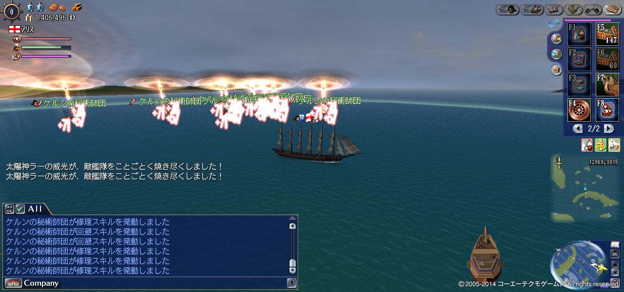アグリッパさんから不穏なお手紙をいただき、ハバナすぐ上あたりでケルンの秘術師団(ラ・レアル10隻)と戦闘です。