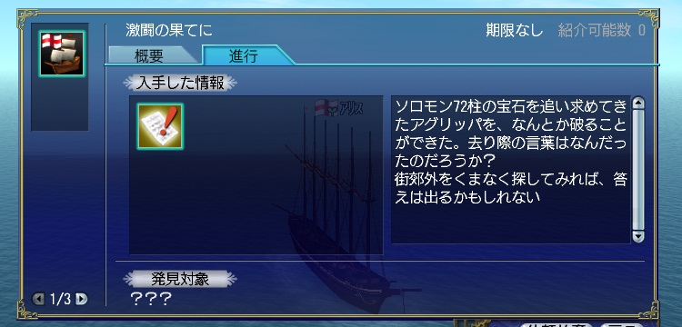 ソロモンの鍵をゲットしようということで、連続クエストのチャートを調べてやってみました。