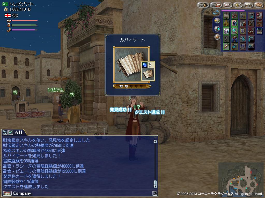 冒険クエスト『法学の基盤』、『古代ギリシャの神像』、『父のリュート』、『奇岩の宗教都市』、『人を守護するメデューサの目』、『奇妙な詩集』をやりました。
