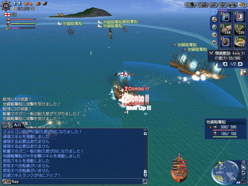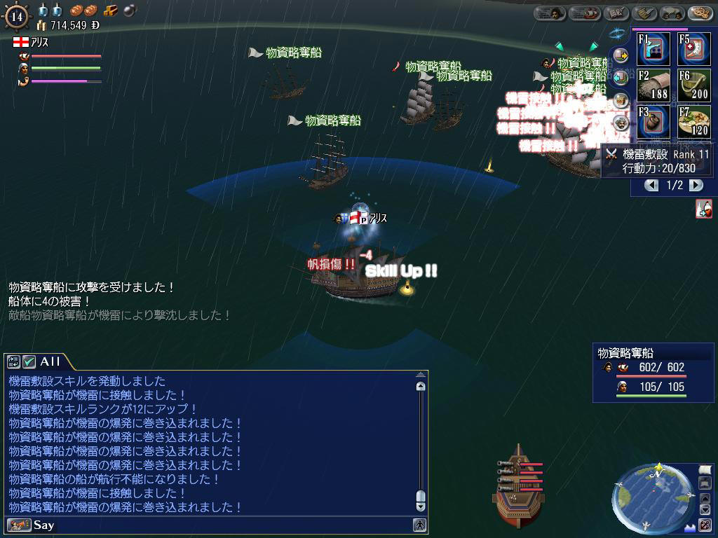 敵は重ガレオン10隻で、回避スキルを使いながらひたすら機雷を撒きます。