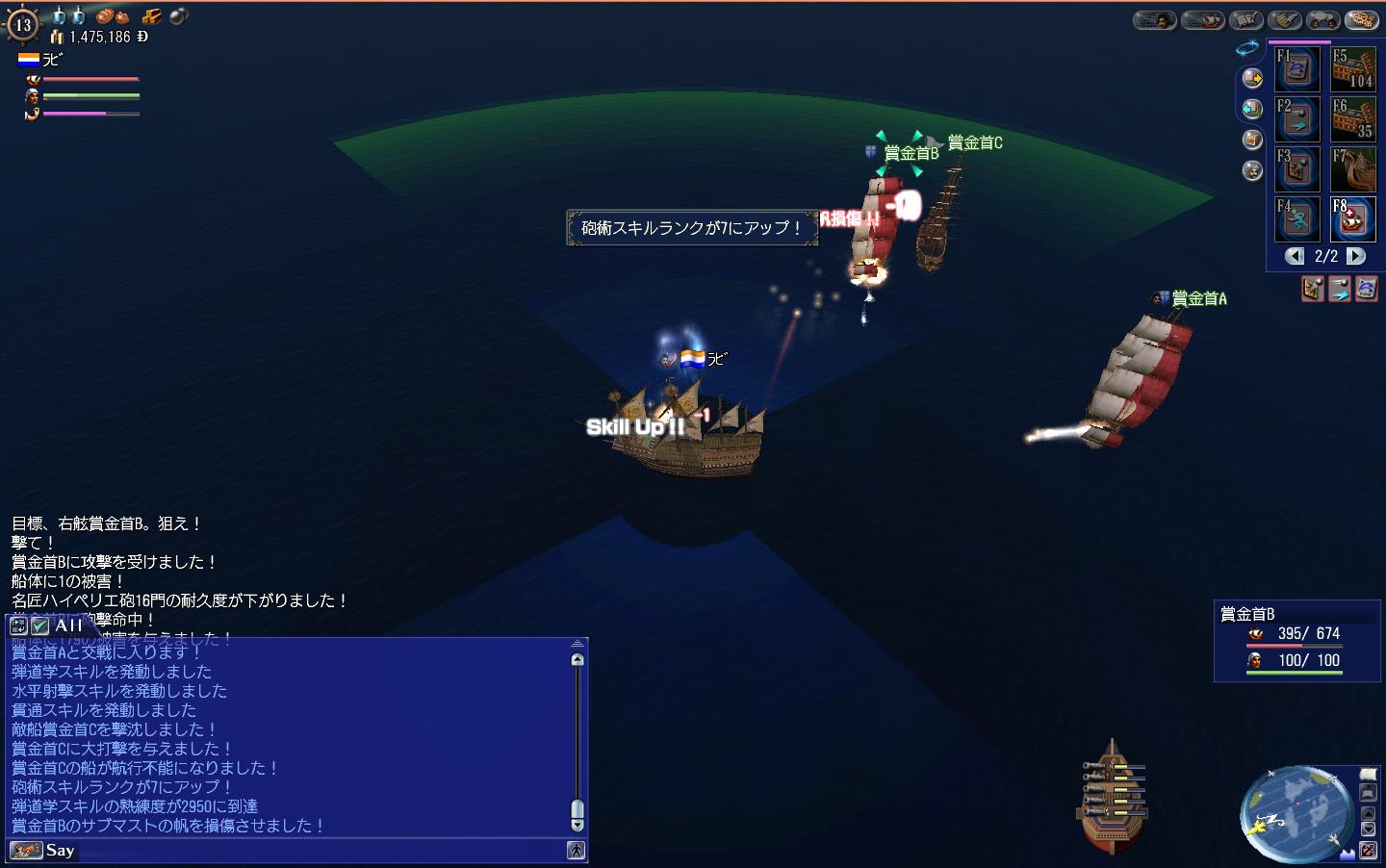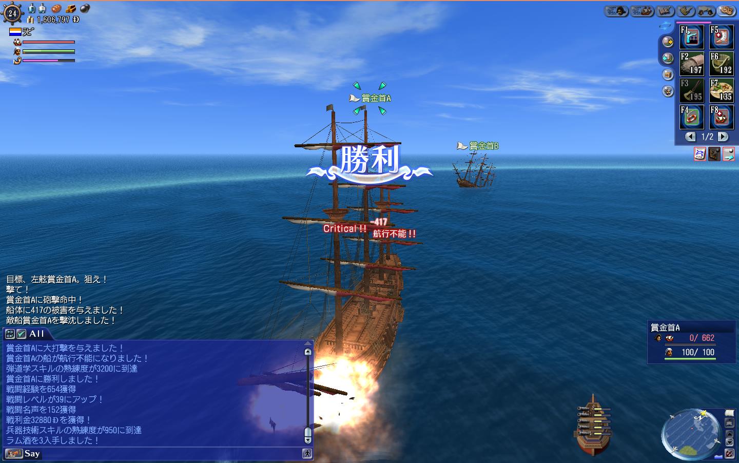 賞金首はこちらの船の近くまでつっこんでくるけど接舷する前に舵を切ってくるタイプの動きをするので、つっこんでくるところを狙えばクリティカル取りやすいかと思います。