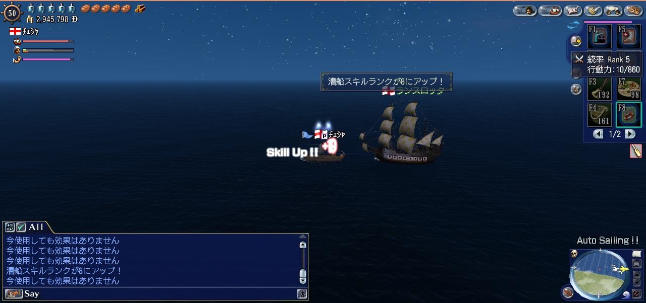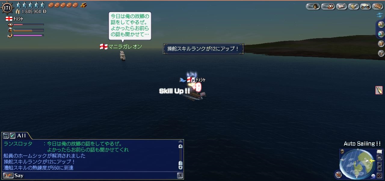 チェシャは戦闘マシーンになりたい予定なので操舵も上げてるんだけど、アリスが今13だからカンストさせるのはこの二人だけでいいかな?(ヽ'ω`)
