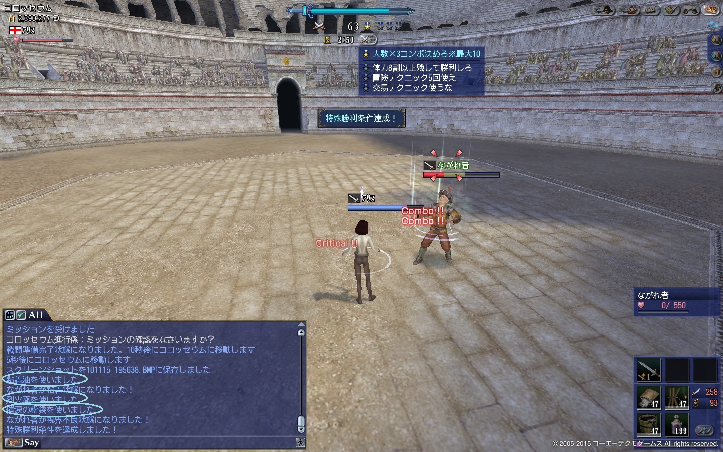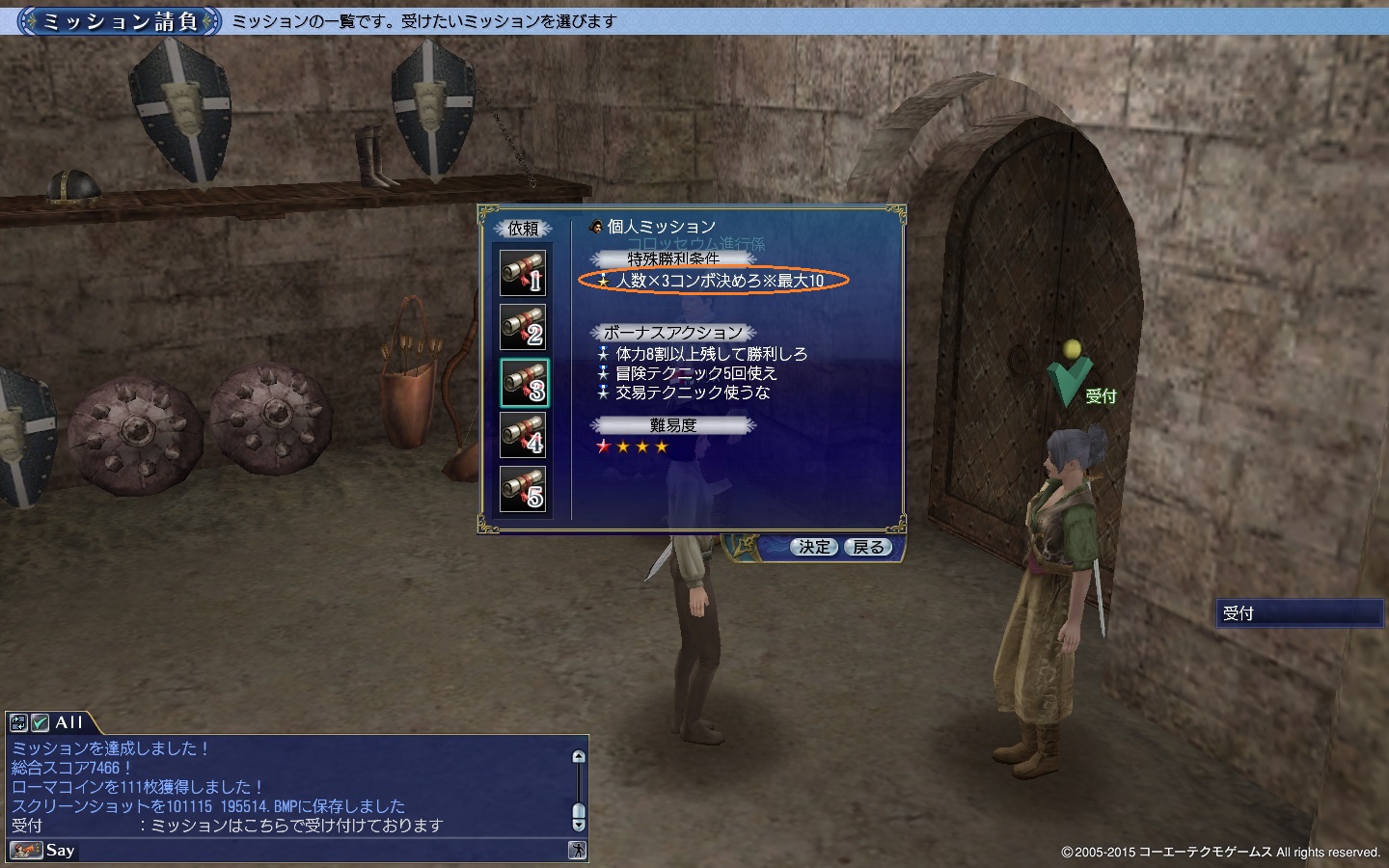 そしたら受付で個人ミッションを受けるのですが、この時人数×3連コンボを決めろというのがあるのでそれを受けます。