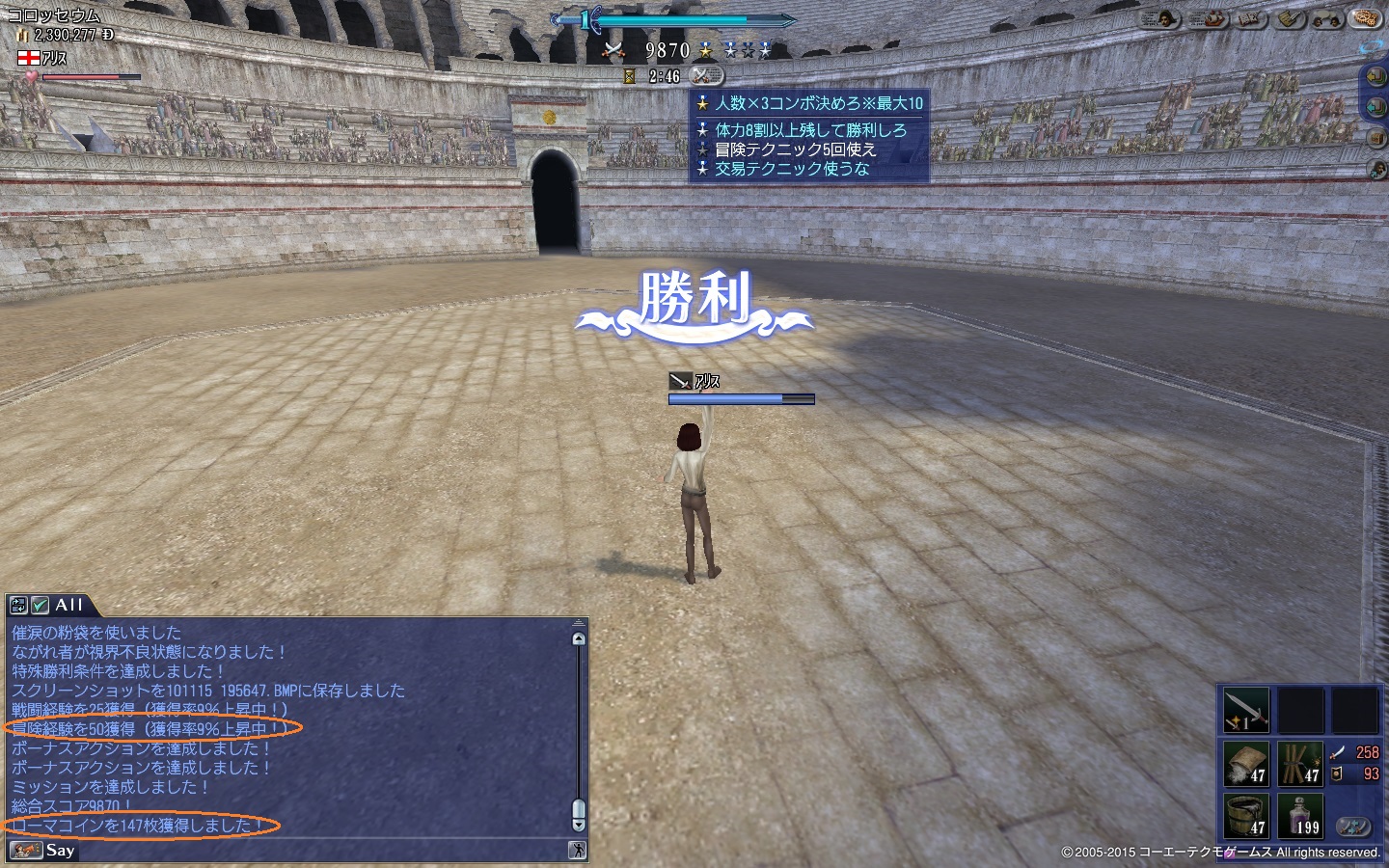 するとローマコインもらえます(これは多くもらえたほう、1回100枚くらいが基本でした)。