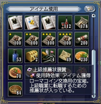その中のアイテムに上級推薦状褒賞というのがあるのですが、開けると転職状がもらえるという物。