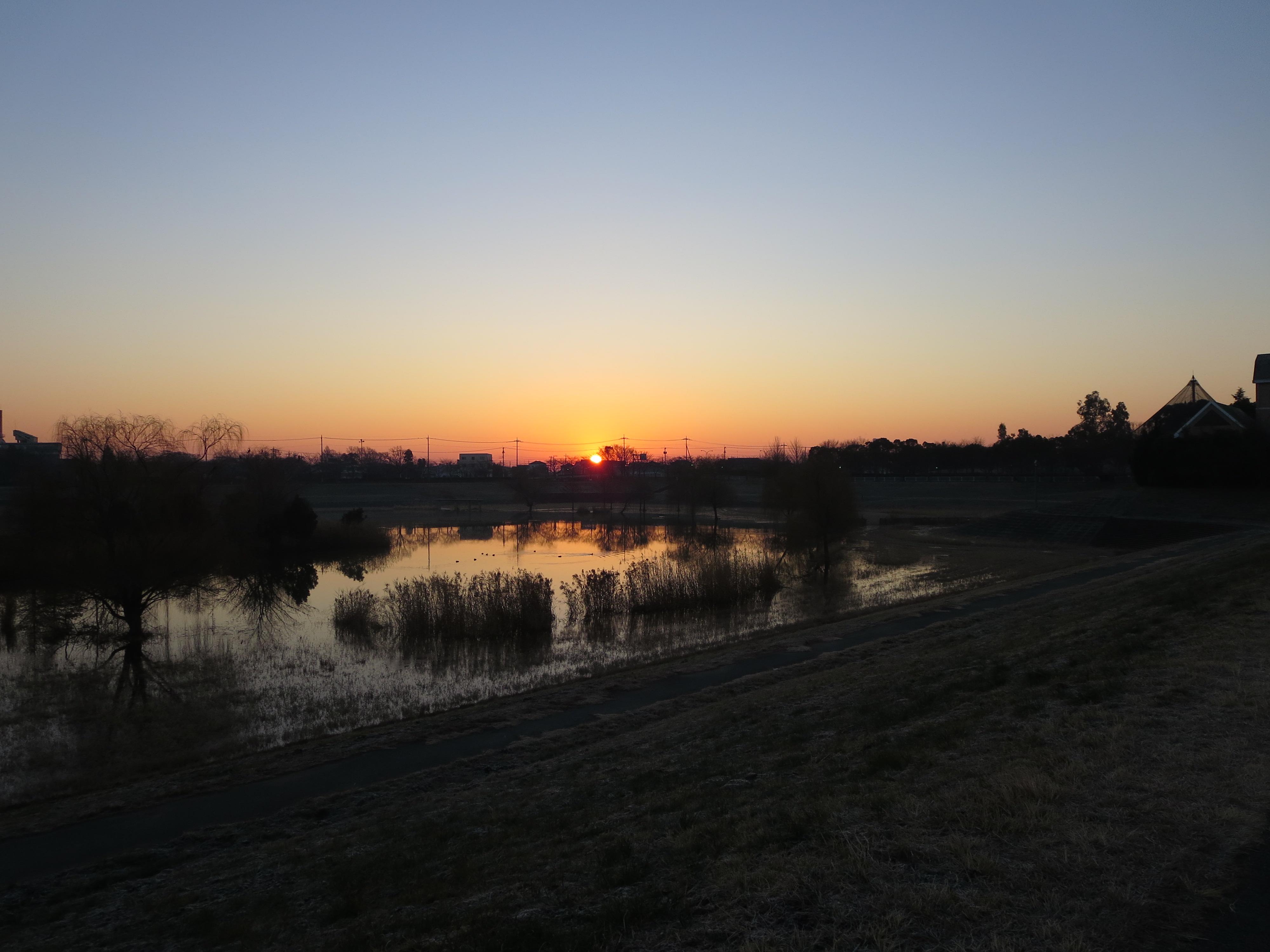 ネットで天気の情報通から「この辺の初日の出は6時51分ころらしいぜ」というクエスト情報を入手し、防寒装備を整え少し前に散策に。