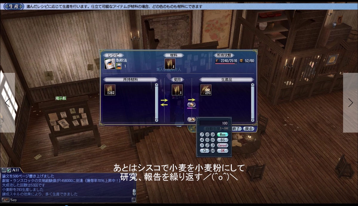 釣りで50回はきついと思っていたら、生産系の研究もできるようになっていて。