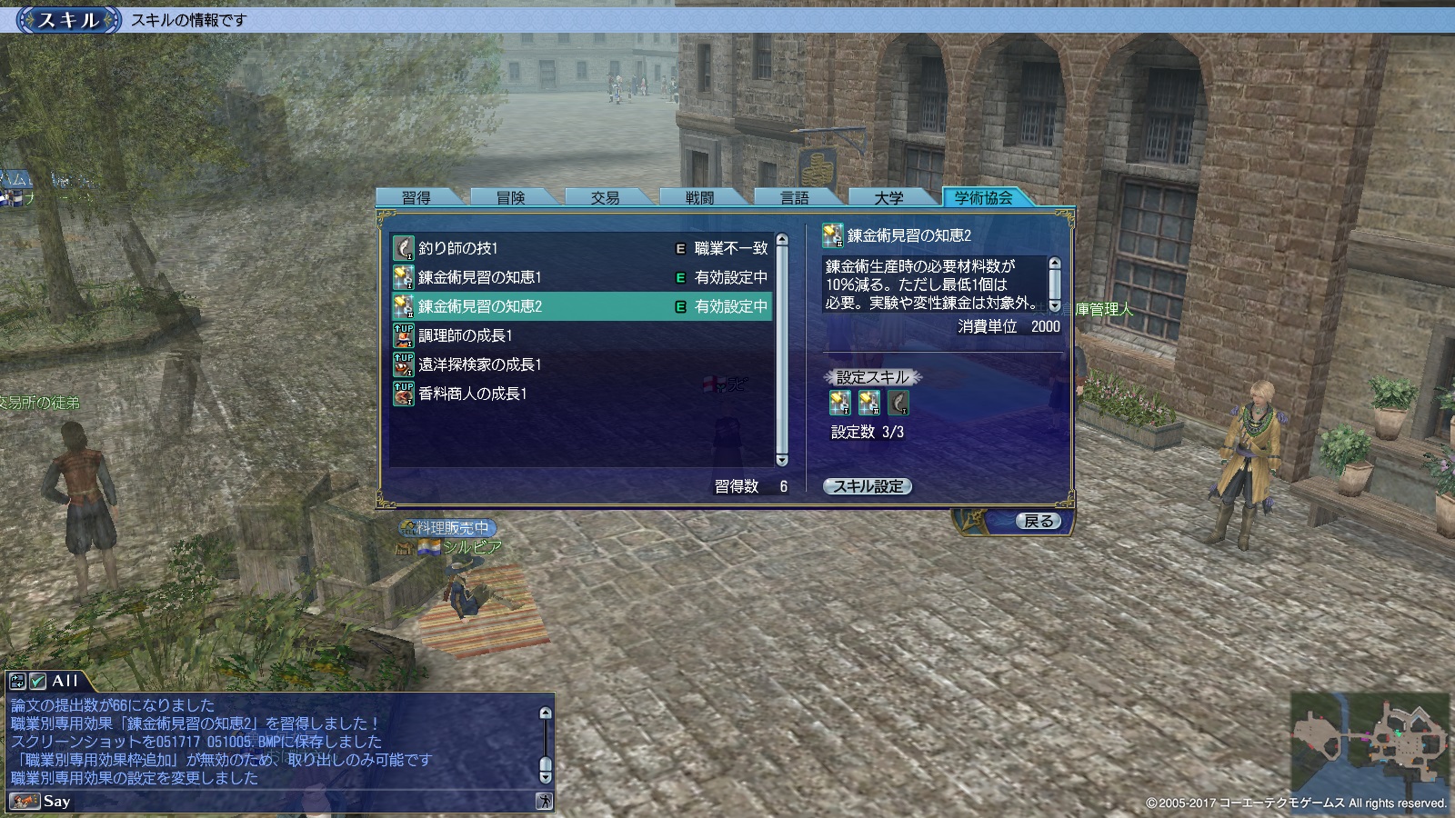工芸R20、大学スキルはアイテム強化技術・生産大成功率増加3・4を入れて、船は工作室の付いてるもので洋上で生産しますた。