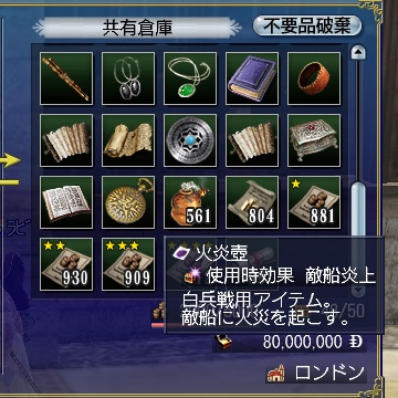 白兵戦用アイテムで使うと敵船に火災を起こすというものです。