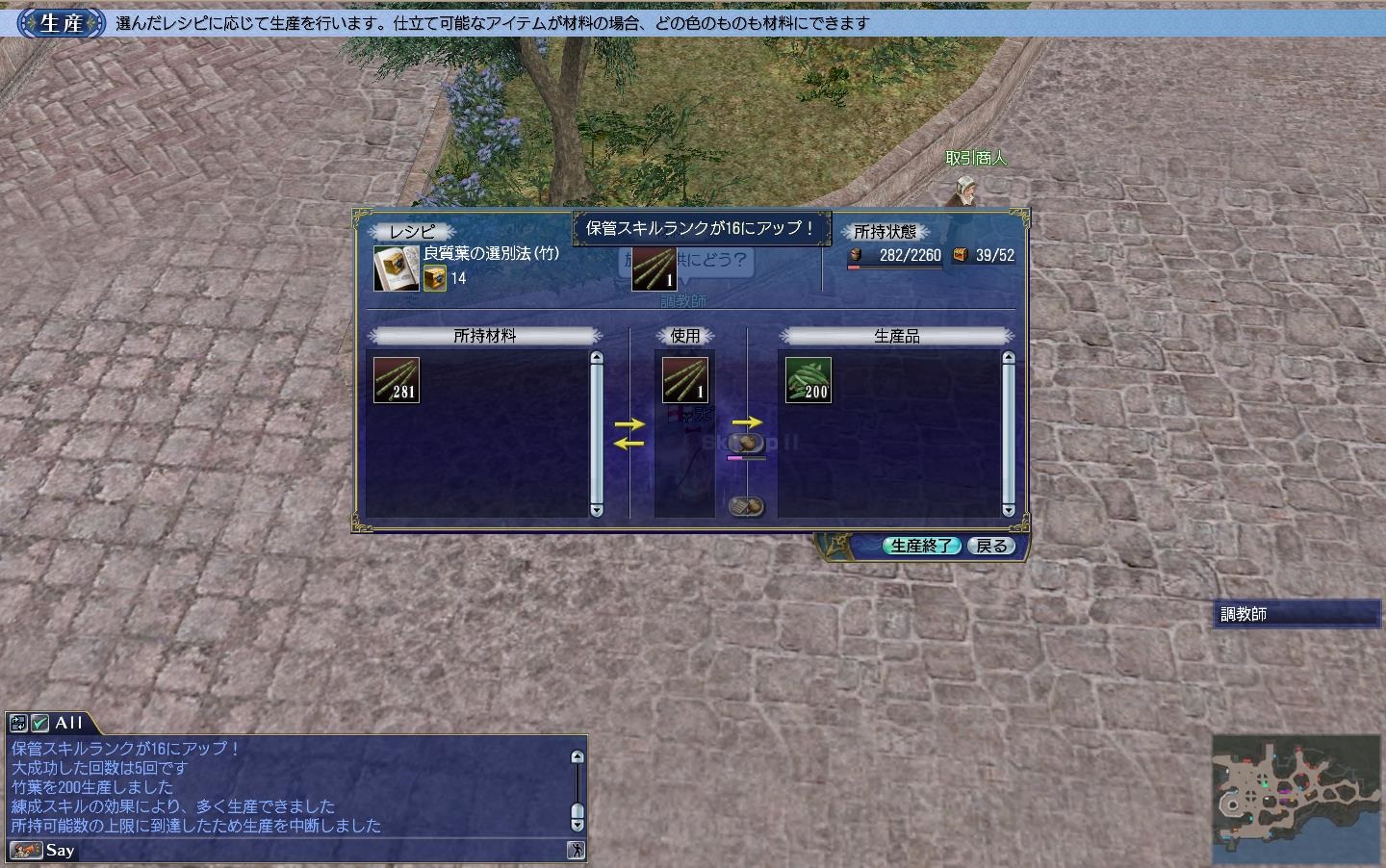 ただ街中での生産になるので管理技術を上げきっている人には推奨なんですが、ちなみに竹葉はパンダの餌でスキル上げのためには作っては捨てということになります(*´Д`)