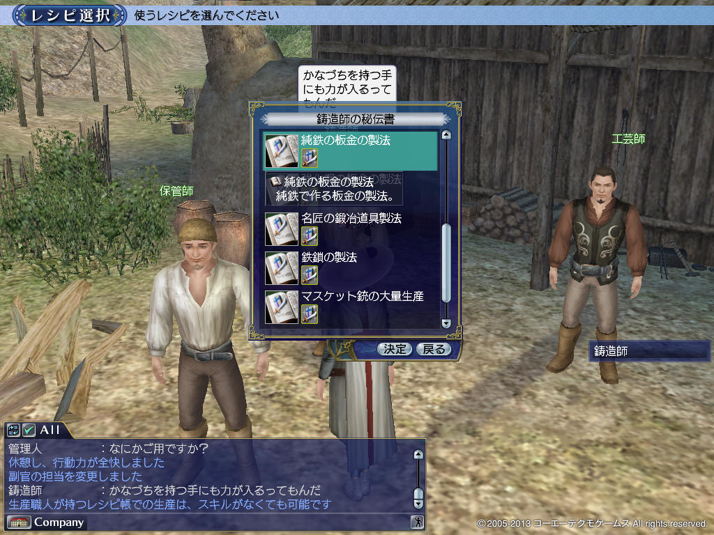 ちなみに鉄張り装材は 純鉄の板金x5 名匠の鍛冶道具x2 圧延鉄板x1 が材料で、鋳造R16 造船R12で作れます。