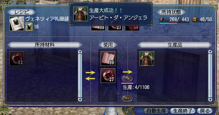 自宅生産ならファームがサバイーじゃなくても作れるし、ししゅう糸と生糸をアパートにストックしておけば日々勝手に作ってくれるようです、イイネ!w