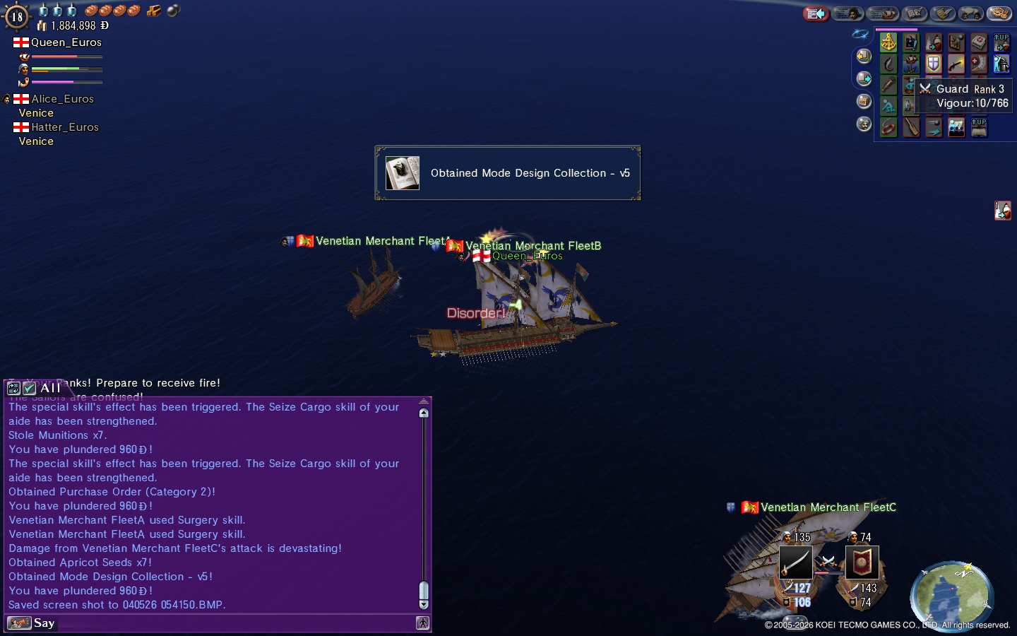 このモード5、ヴェネ商船隊から取れます。沈めないように気を付けると、敵対度がつかないで〇