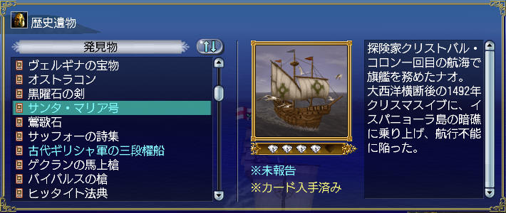 先日、91隻目の沈没船にして初めてやっとサンタ・マリア号を引き上げました。