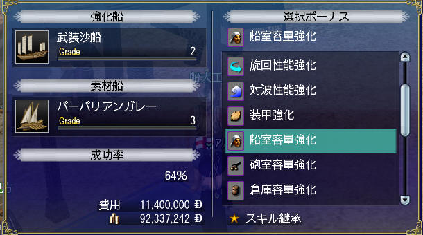 リビルドは今回もG1でスキル継承・強化砲門、G3で船室容量強化をつけました。