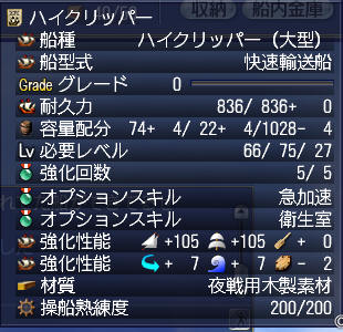 冒険Lvがやっと66になり、ハイクリッパーを作ることにしました。