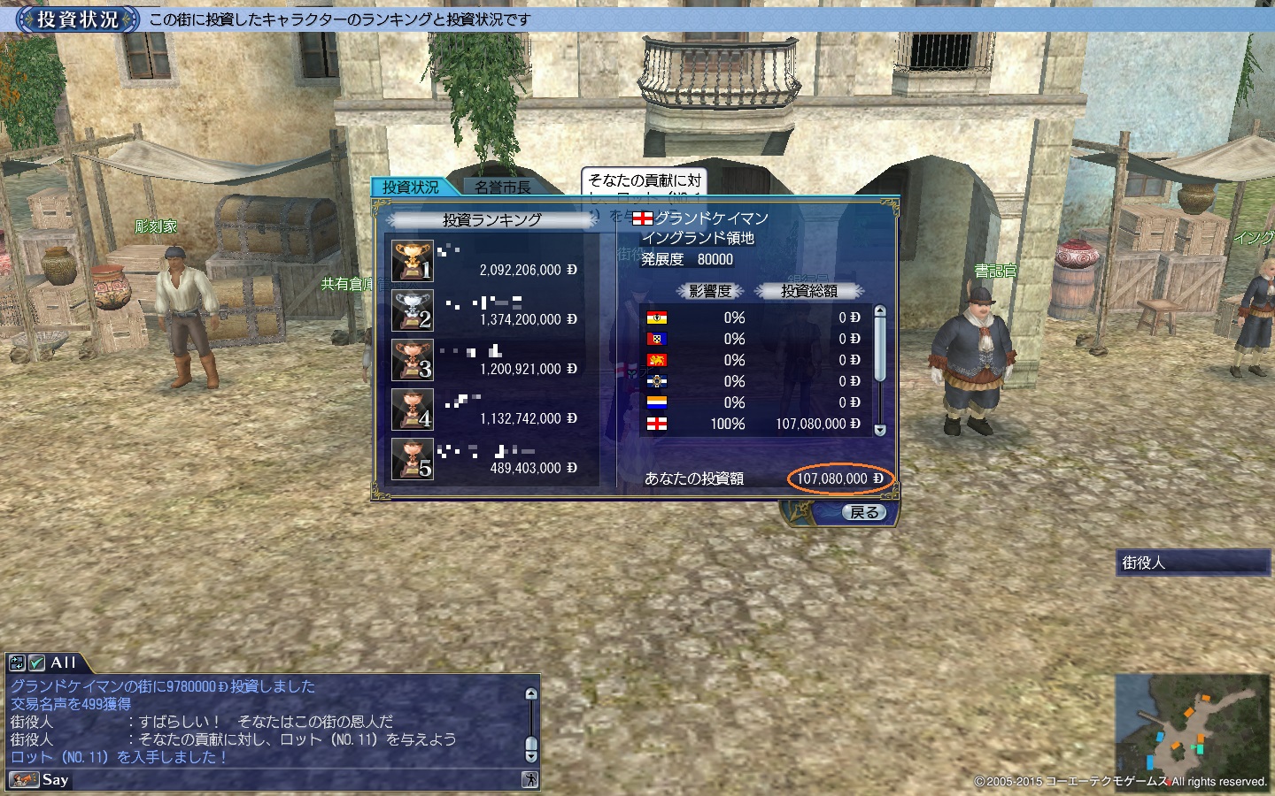 というわけで本拠地・開拓地は100Mずつ、領地は10Mずつ入れてきました( ゚д゚ )クワッ!!