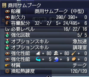 商サムは船倉大きめで速いので、この船に乗れるレベル帯の人にとってはとてもよさそうな船だと思います。