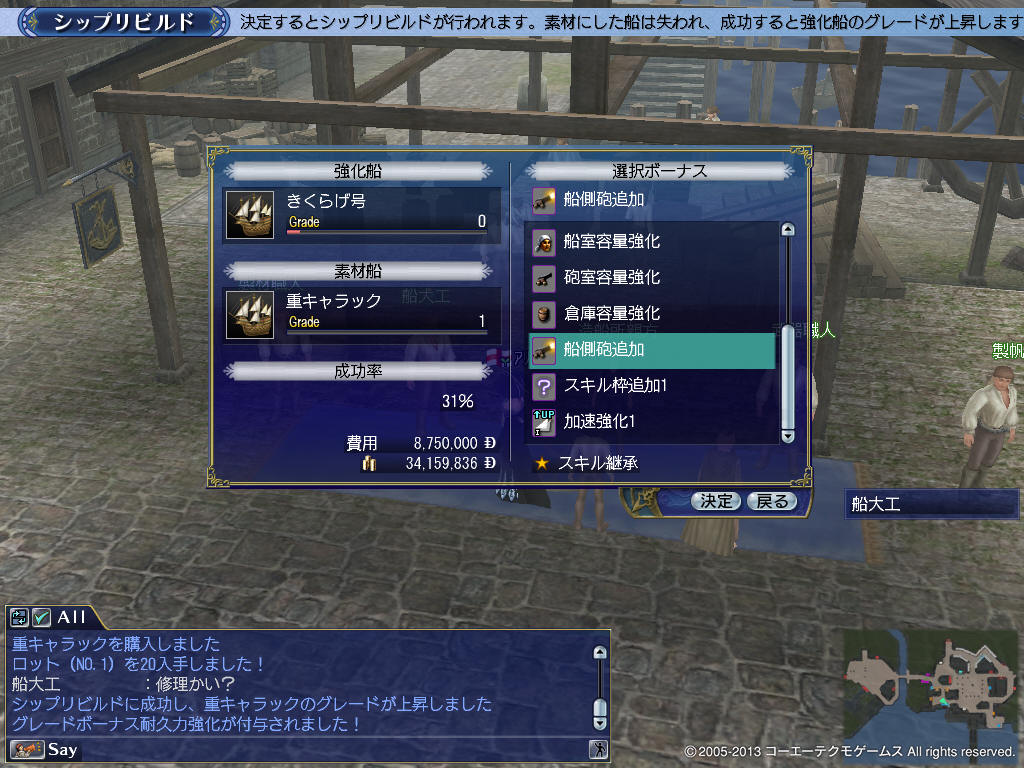 重キャラックを掛け合わせて船側砲追加のボーナスを選択。