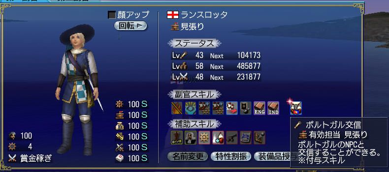 始めに大国亡命になりますがポルトガルに亡命して、後はそれより勢力の小さい国へ国へと行けばよいかなと思い、副官のランスロッタにポルトガル交信の副官スキルなどを付けてみました。