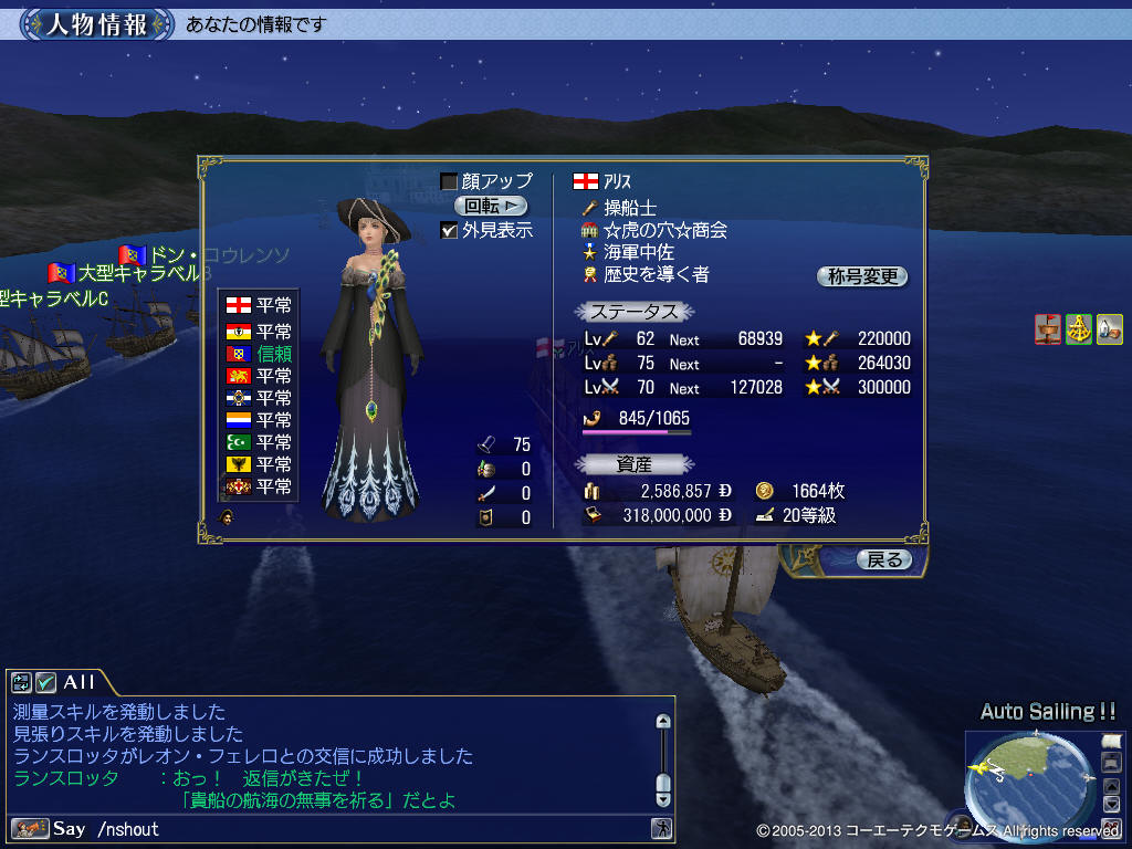 ランスロッタがポルトガル商船隊Aとの交信に成功しました