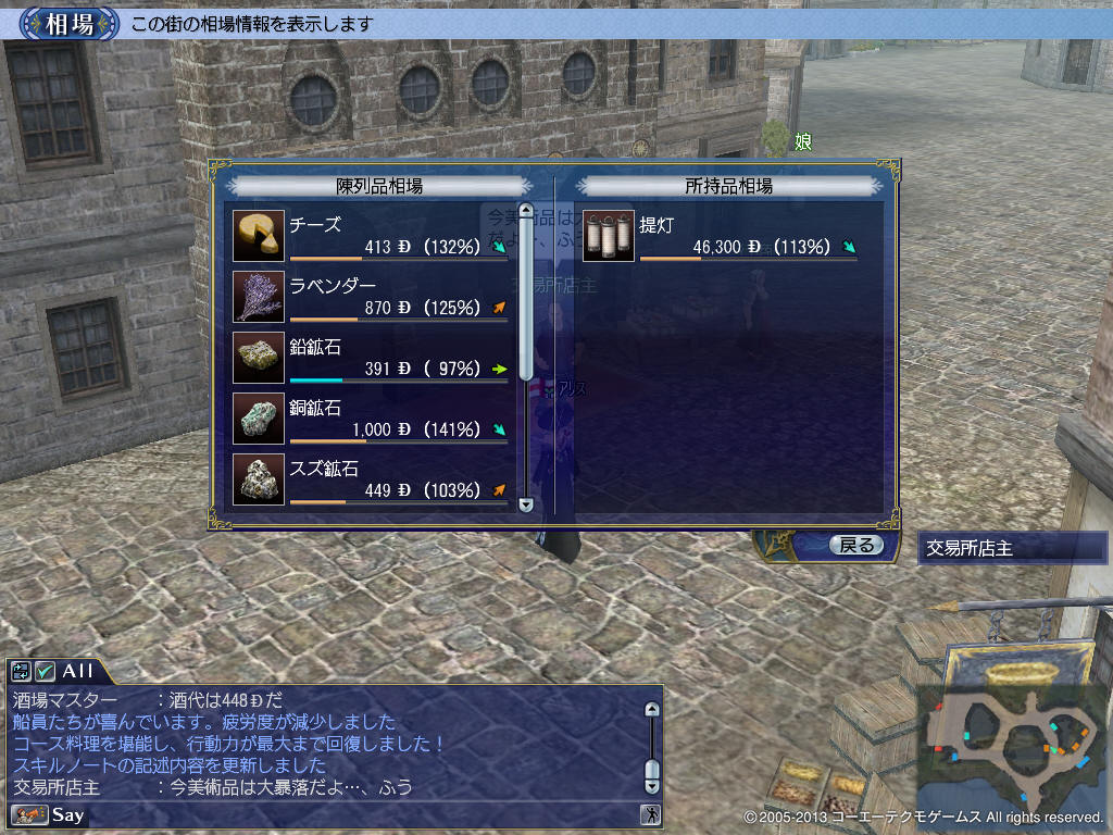 自分の持ってる取引スキルと相談して、よさそうな交易品を持ち込むとよいですね^^